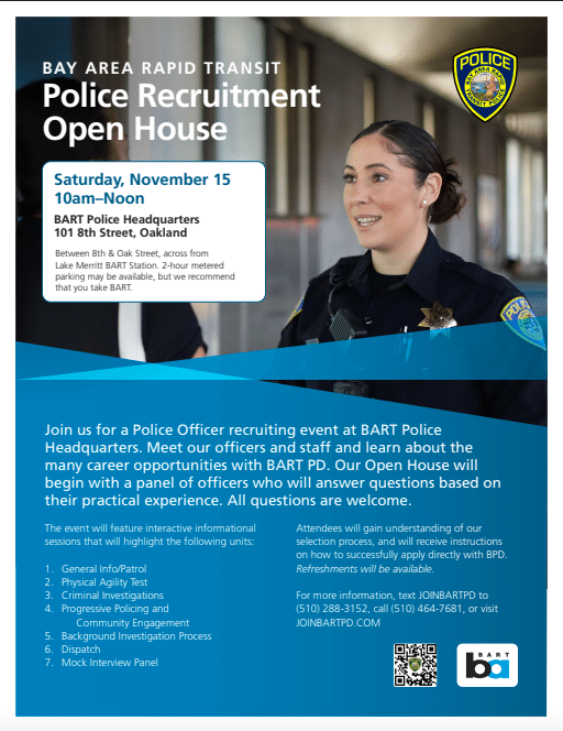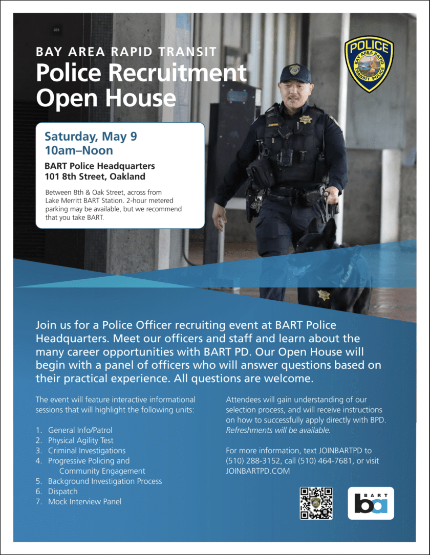 The BART Police Department now has new salaries and has streamlined its hiring process. We are offering a $15,000 hiring bonus for laterals, dispatchers and academy graduates.